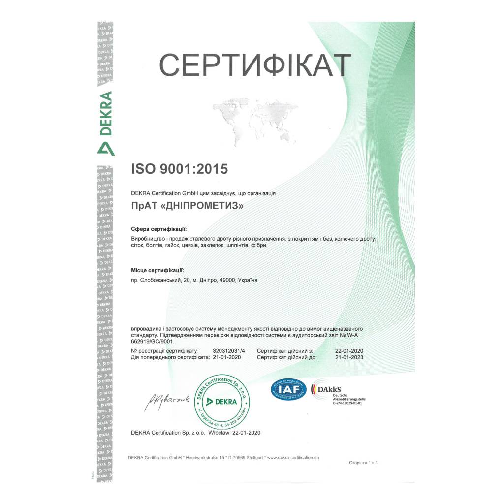 On November 18-19, 2019 Certification body Global Certifik (official representative of the European certification body DECRA (Germany) conducted works on recertification of the quality management system (QMS) of PrJSC “Dneprometiz” in the international system for compliance with ISO 9001:2015 standard and the supervisory audit of QMS for compliance of the company with the national standard DSTU ISO 9001:2015.